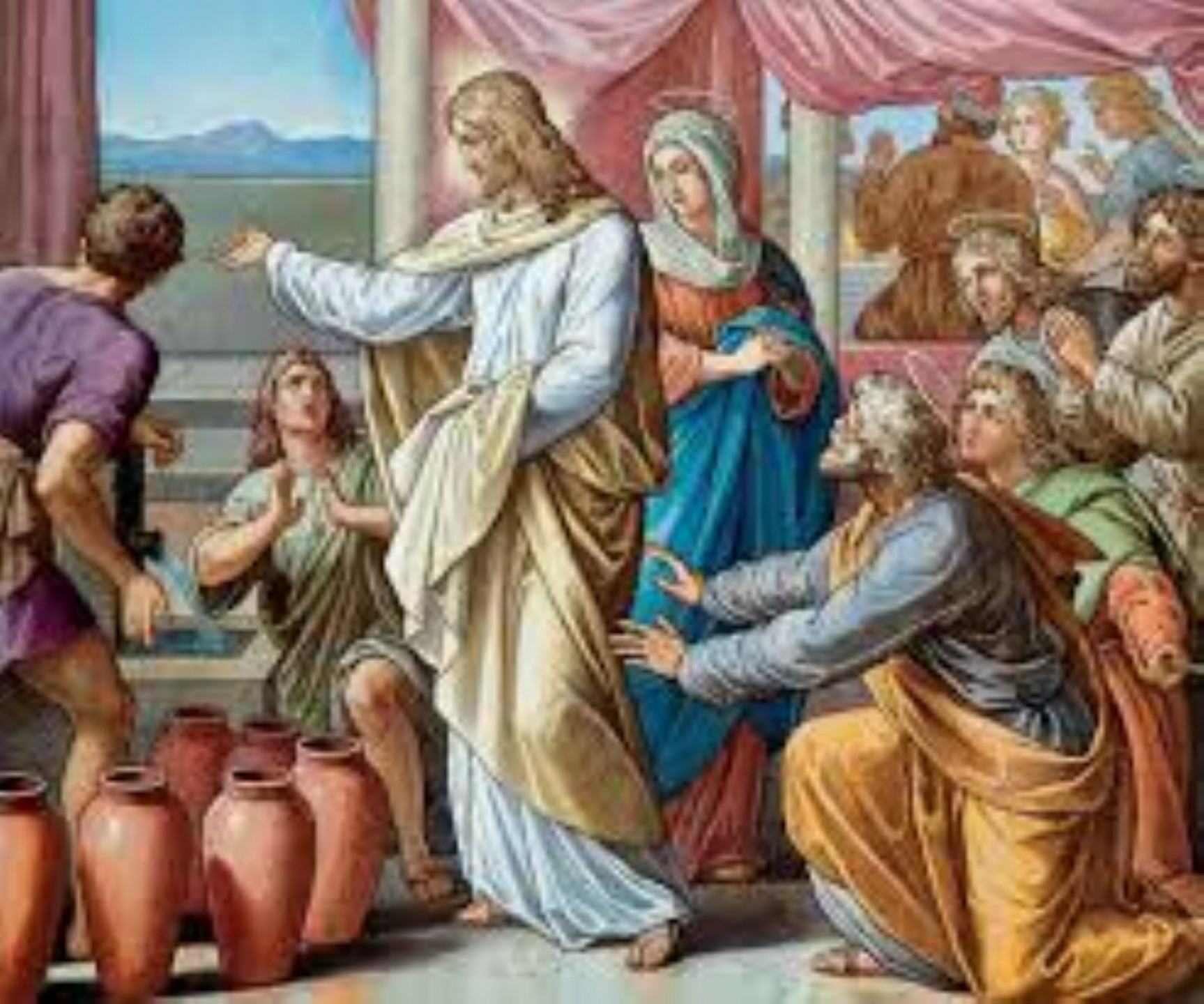 Molto rilevante è anche la figura della Madonna che, pur nella discretezza, manifesta premura materna facendosi mediatrice che intercede, presentando le nostre necessità al Figlio: «non hanno più vino» e invitando noi alla piena fiducia nel divino Figlio in ogni situazione: «qualsiasi cosa vi dica, fatela».